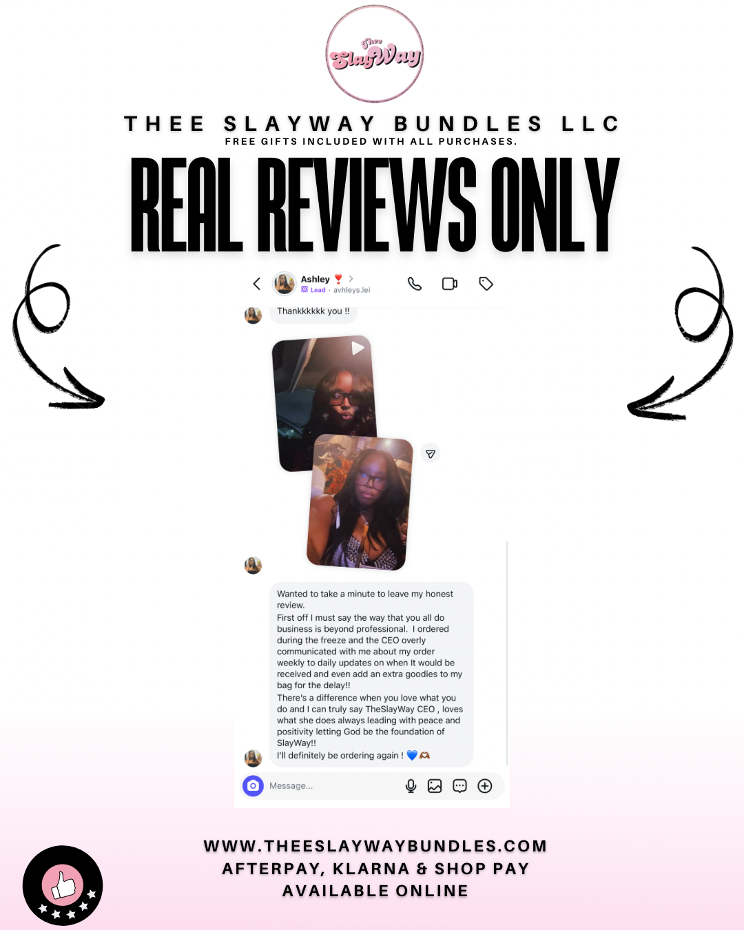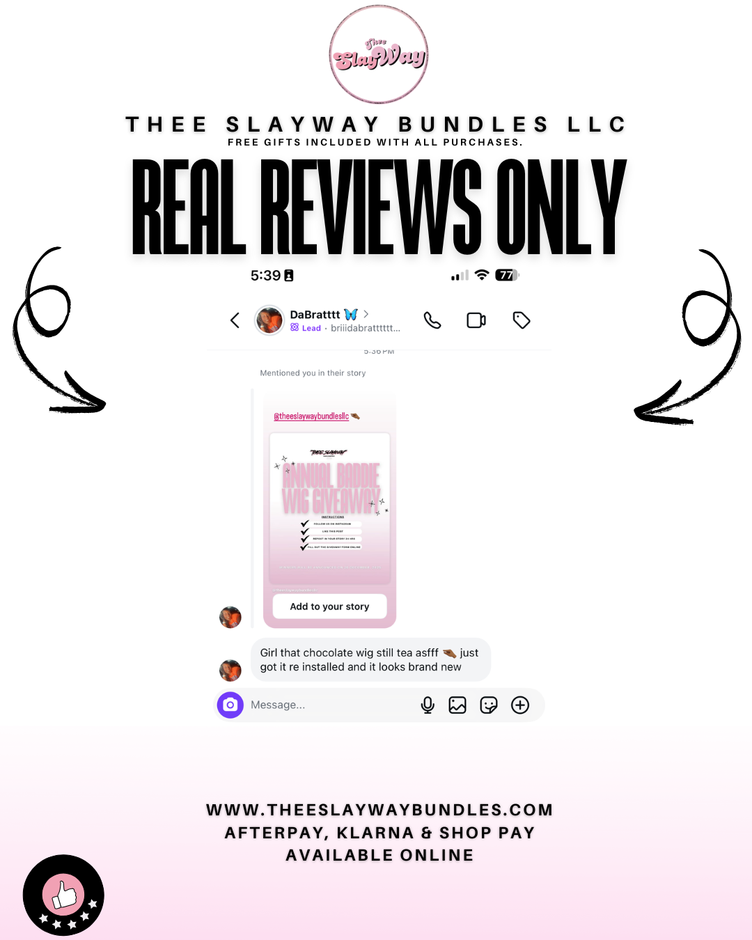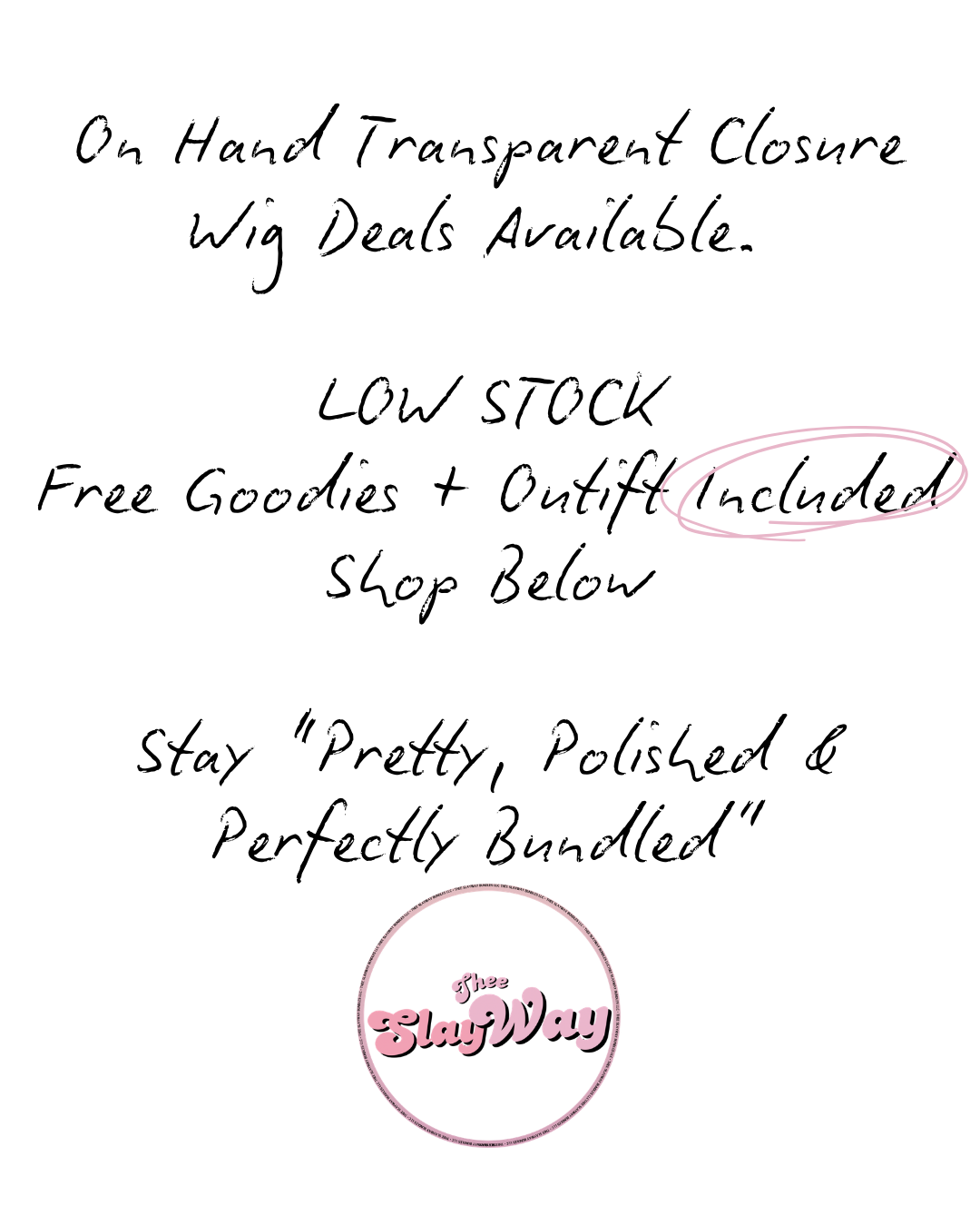 We offer automatic no charge goodies and outfits for ALL SlayWay purchases to prepare you for the before and after-care of your tresses and the slay that comes immediately after. Receive essential items in our complimentary goodie bags designed to optimize the health of your hair. (Products & Outfits given are randomized)