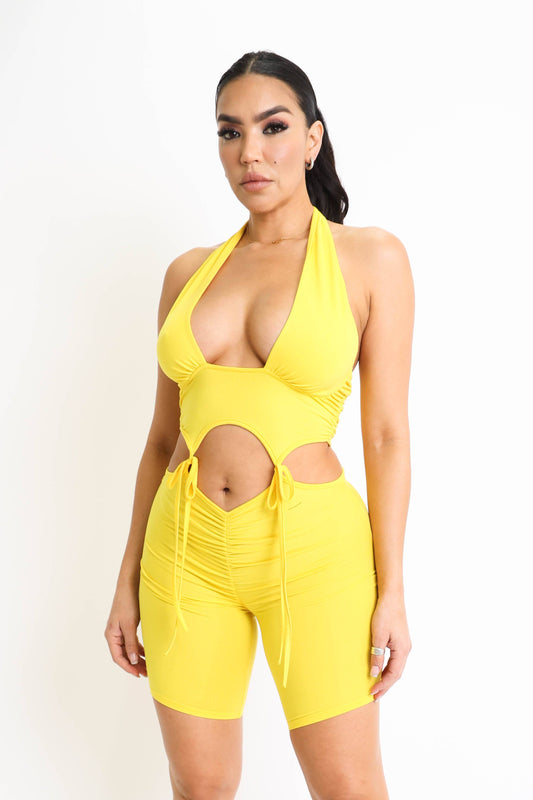 Ruched Detailed Summer Halter Romper